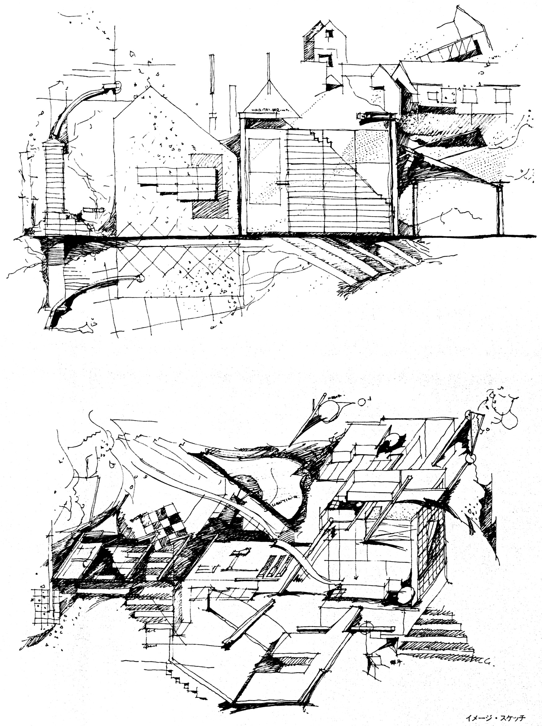 구축한다는 것 보다는 이미지를 덧붙여 나간다는 기분으로 디자인하여, 전체구성에서 부분부분의 세부까지 그 장소와의 관계를 가지면서 서로 혼재하는 일련의 기호군으로서 표현하고자 하였다.