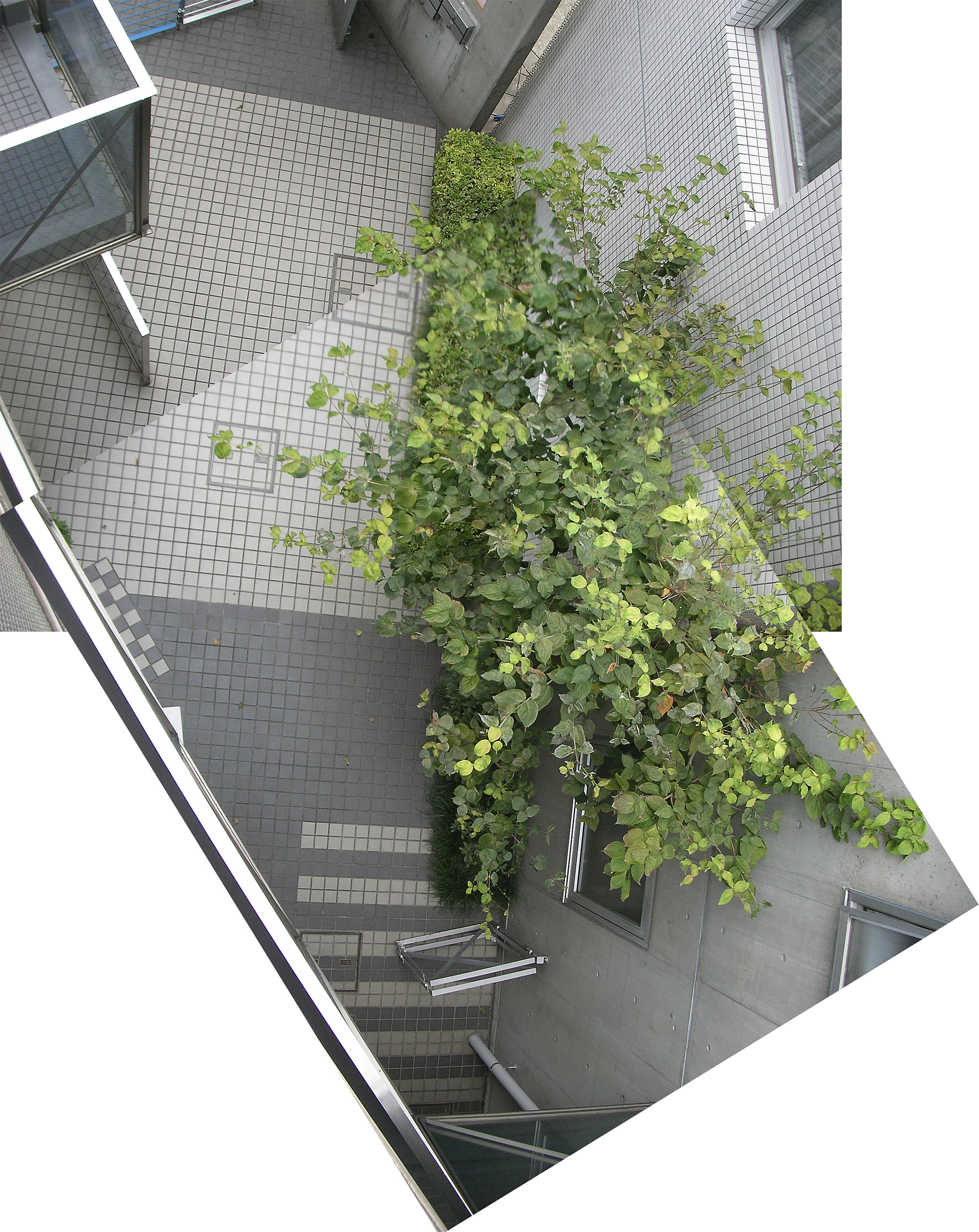 모노크롬한 건물에 색채의 섬광을 비추고자 하였다. 그 흔적과 주변에 칠해진 색채의 일부를 내부에 침투시켜 주변의 분위기와 어울려져 물성을 퇴색시켜 시간의 경과를 암시하는 역할을 했으면 한다.